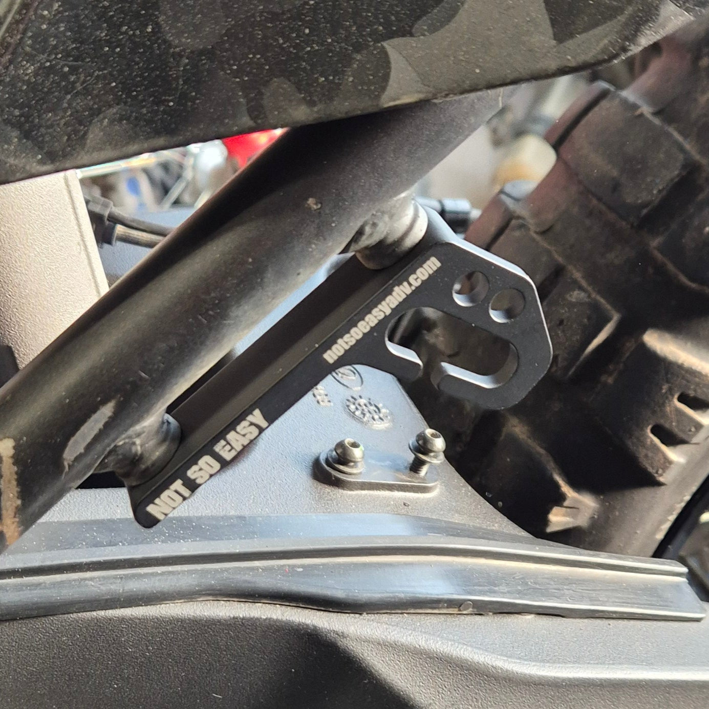 Pair of small and powerfull luggage hooks for your Tenere 700. Must be mounted instead of the passenger footpegs. Does not fit combined with the passenger footpeg.